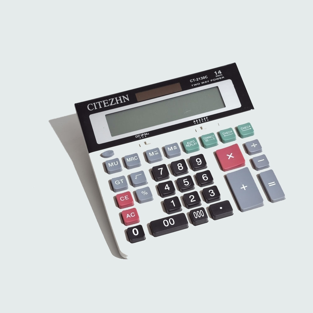 ماشین حساب -CITEZN * باتری با شارژ نور خورشید * نمایش 14 کاراکتر * خاموشی اتوماتیک * محاسبهی زنجیره * داری حافظه